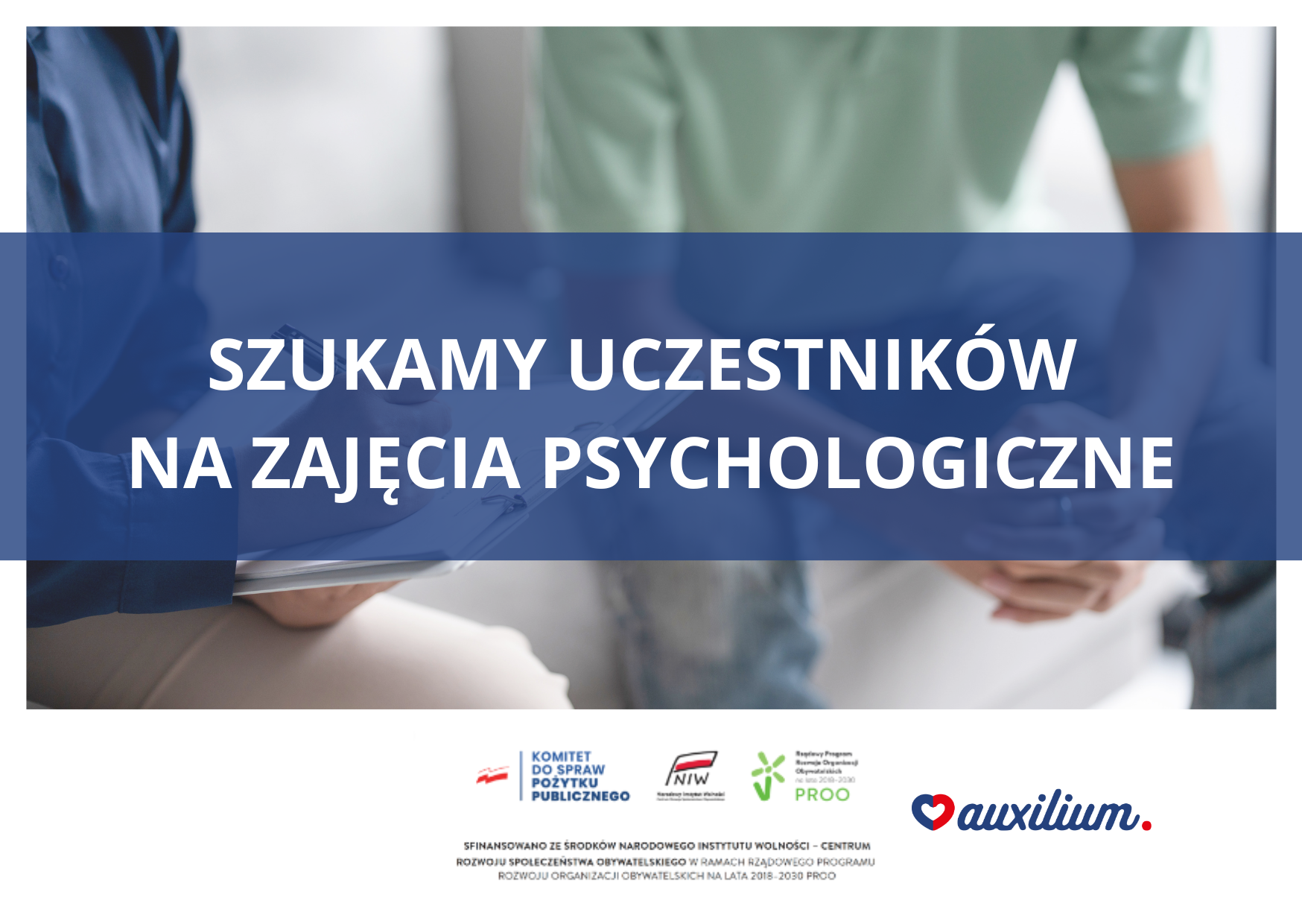 Fundacja Pomocy Osobom Niepełnosprawnym oraz Dzieciom i Młodzieży AUXILIUM ogłasza nabór Uczestników i Uczestniczek na bezpłatne zajęcia psychologiczne realizowane w